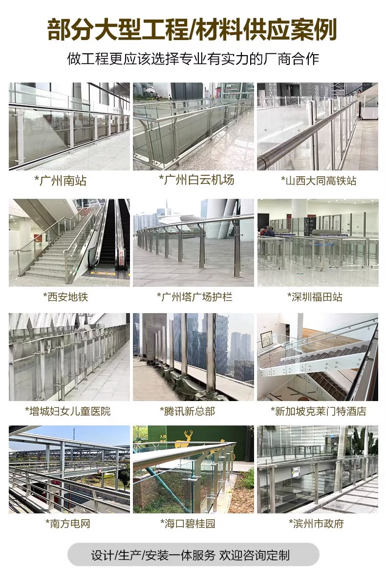 此產(chǎn)品為工程護欄立柱,多次被市政府,高鐵站,飛機場,超商,大型企業(yè)采購。強度高,耐磨損,耐腐蝕,色澤好。加厚價款底座更加結實耐用,圓棒玻璃夾安裝方便