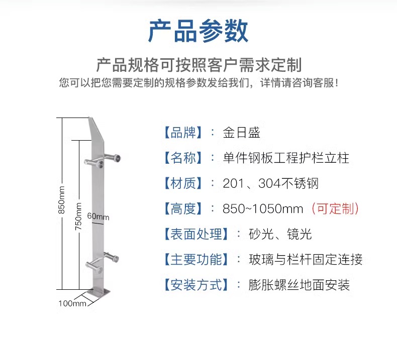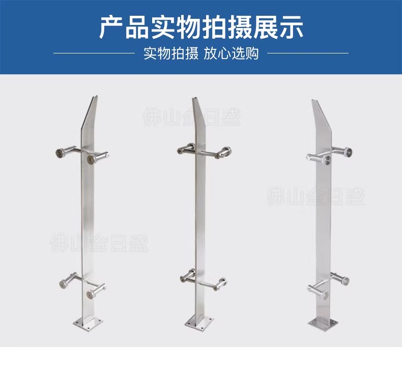 此產(chǎn)品為工程護(hù)欄立柱,多次被市政府,高鐵站,飛機(jī)場(chǎng),超商,大型企業(yè)采購(gòu)。強(qiáng)度高,耐磨損,耐腐蝕,色澤好。加厚價(jià)款底座更加結(jié)實(shí)耐用,圓棒玻璃夾安裝方便