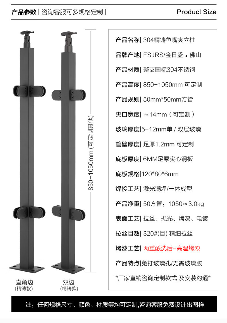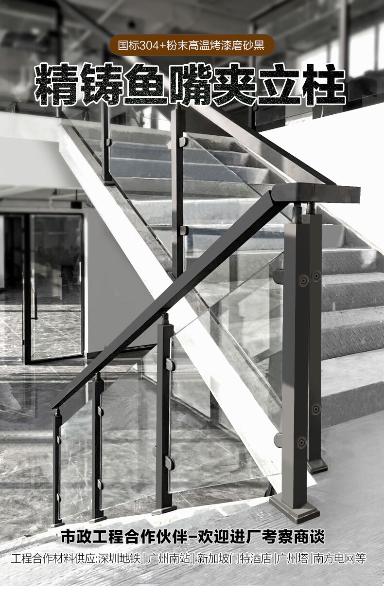 啞光魚嘴夾玻璃立柱